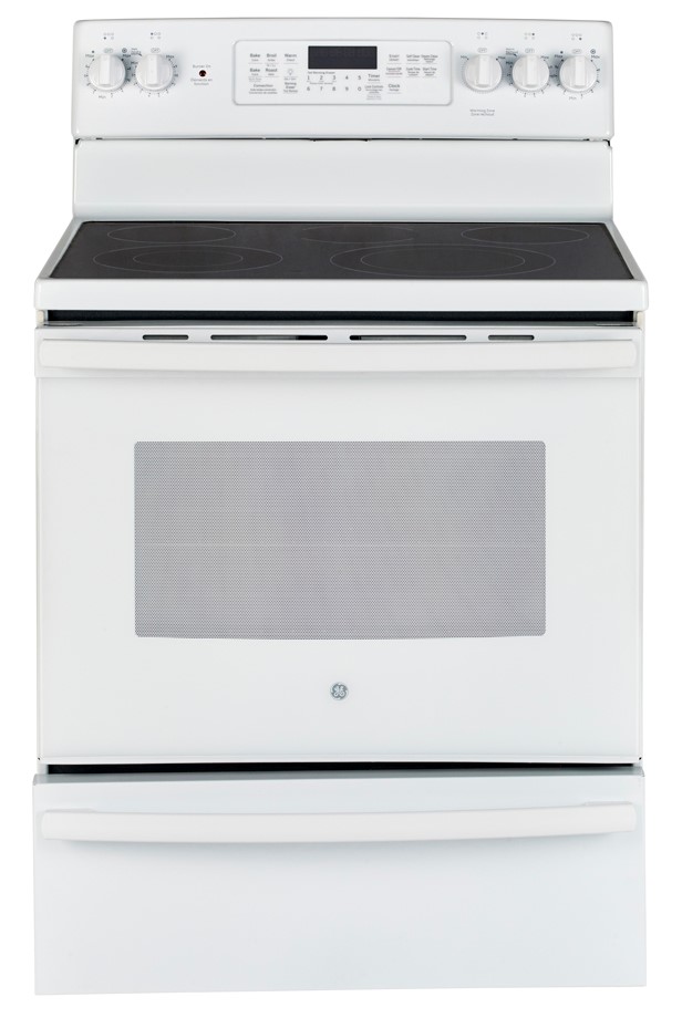 This self-cleaning white electric range comes with a digital display, a ceramic glass-ceramic cooktop, and an automatic self-clean oven door lock. It also has an audible preheat signal, convection baking.Read More