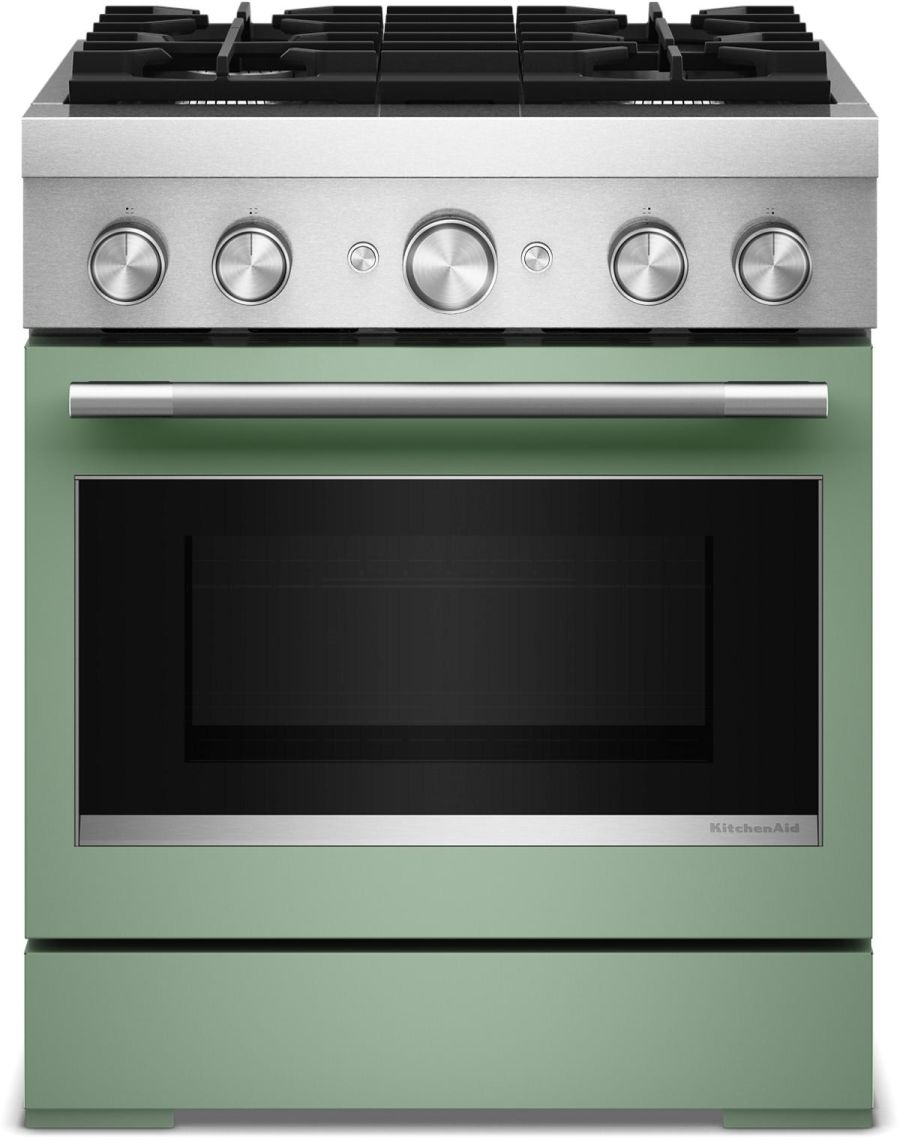 Empower your creativity with a 30-inch KitchenAid® Commercial Style Range with 4 burners. This dual fuel range combines a gas cooktop with the even baking of an electric oven. Two versatile 20,000 BTU Ultra Power™ Dual-Flame Burners offer the power and precision to sear, simmer, stir-fry and sauté. Even-Heat™ True Convection gives consistent baking and roasting, plus air fry mode that yields crispy, golden results.Read More
