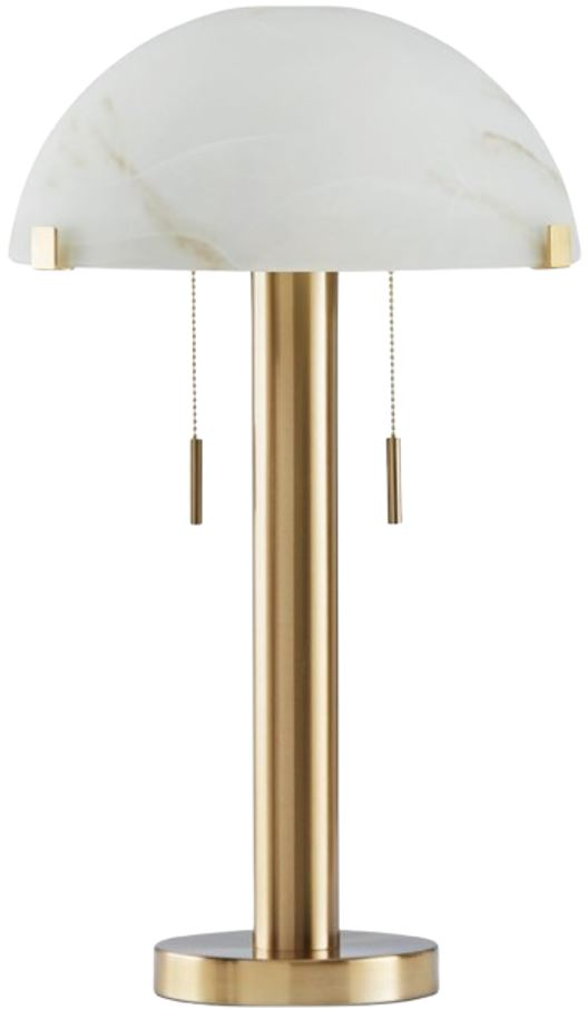 With its art deco-inspired design, this table lamp is an easy statement piece. The glass dome shade provides soft ambient light, while pull chains and a brass-tone finish add classic flair. It’s a delightful choice for vintage-inspired spaces where watt’s old is watt’s new.Read More
